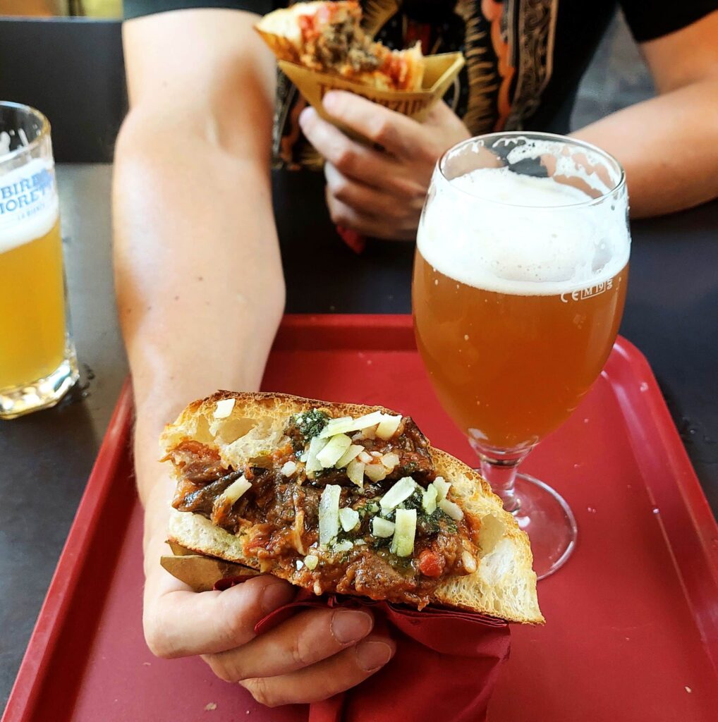 Poza nami w Osteria a Piedi Pari za każdym razem byli sami Włosi – ani śladu turystów! Przy drugiej wizycie zdecydowaliśmy się na test ostateczny, czyli rzymską klasykę – amatricianę i cacio e pepe. Nieskomplikowane dania, których siła tkwi w prostocie i które nie wybaczą żadnej pomyłki. Oba makarony były…fenomenalne! Czarny pieprz, wyrazisty ser pecorino romano i idealnie ugotowany makaron – oto przepis na sukces i duma rzymskiej kuchni! Przy pierwszej wizycie rachunek za dwa talerze pasty i karafkę wina wyniósł niecałe 20 euro (!), za drugim razem zdecydowaliśmy się na lokalne piwa, więc suma końcowa wyniosła koło 25 euro. Takie dolce vita to ja rozumiem!